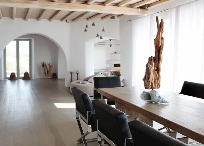 The 3-star Mykonos Ammos Villas Mykonos Town hotel is located in Fanari, 3.9 km from Rarity Gallery, and offers infinity pools. The hotel provides guests with horse riding tours for a more entertaining stay.